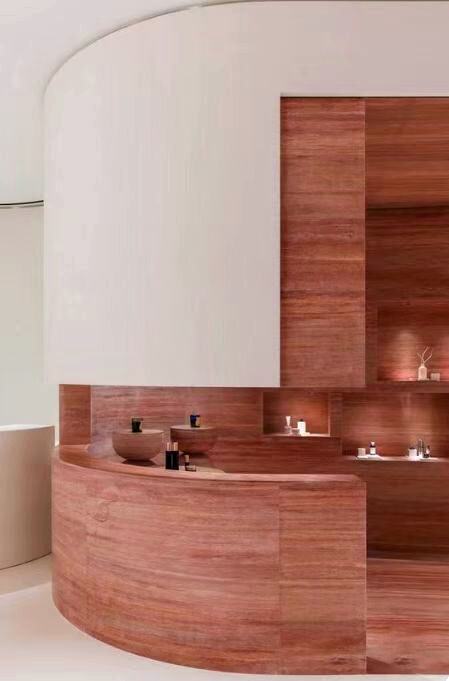 Red Travertine White is a naturally stunning sedimentary rock formed by mineral-rich thermal springs over thousands of years. It features a red base with subtle veining giving each piece unique character.Its porous texture, from trapped gas bubbles during formation, adds distinct depth. Available in polished (gentle sheen) or honed (matte) finishes, it suits styles from classic to modern.Durable and versatile, it works indoors (floors, backsplashes) and outdoors (patios).