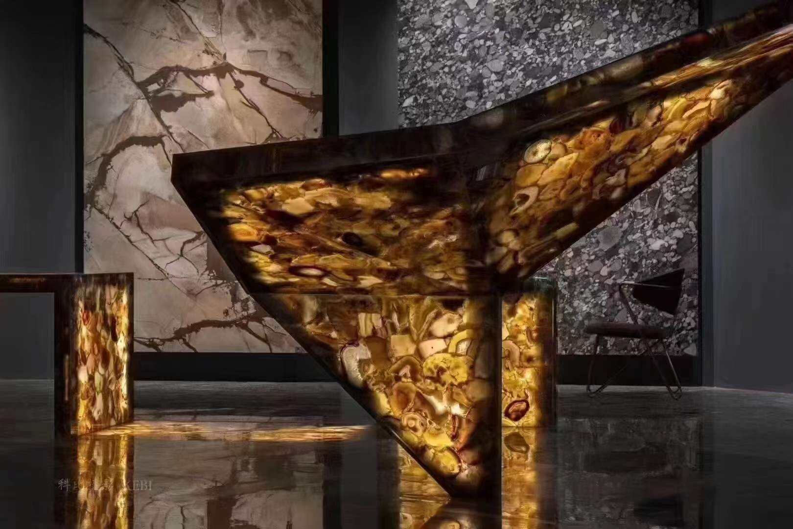 Exclusively designed for interior applications, these luxurious semi-precious stone slabs are favored in high-end architectural and interior design projects. Perfect for feature walls, countertops, vanities, and custom furniture, they serve as stunning focal points that elevate any indoor space. Yingliang Stone offers a curated selection of premium semi-precious slabs, including a wide range of agates—from classic blue agate to other vibrant color options. With their signature translucency and banded texture, each slab adds depth, refinement, and a touch of natural artistry to your design. Transform interiors with the timeless beauty of Semi precious stone—where nature meets craftsmanship.