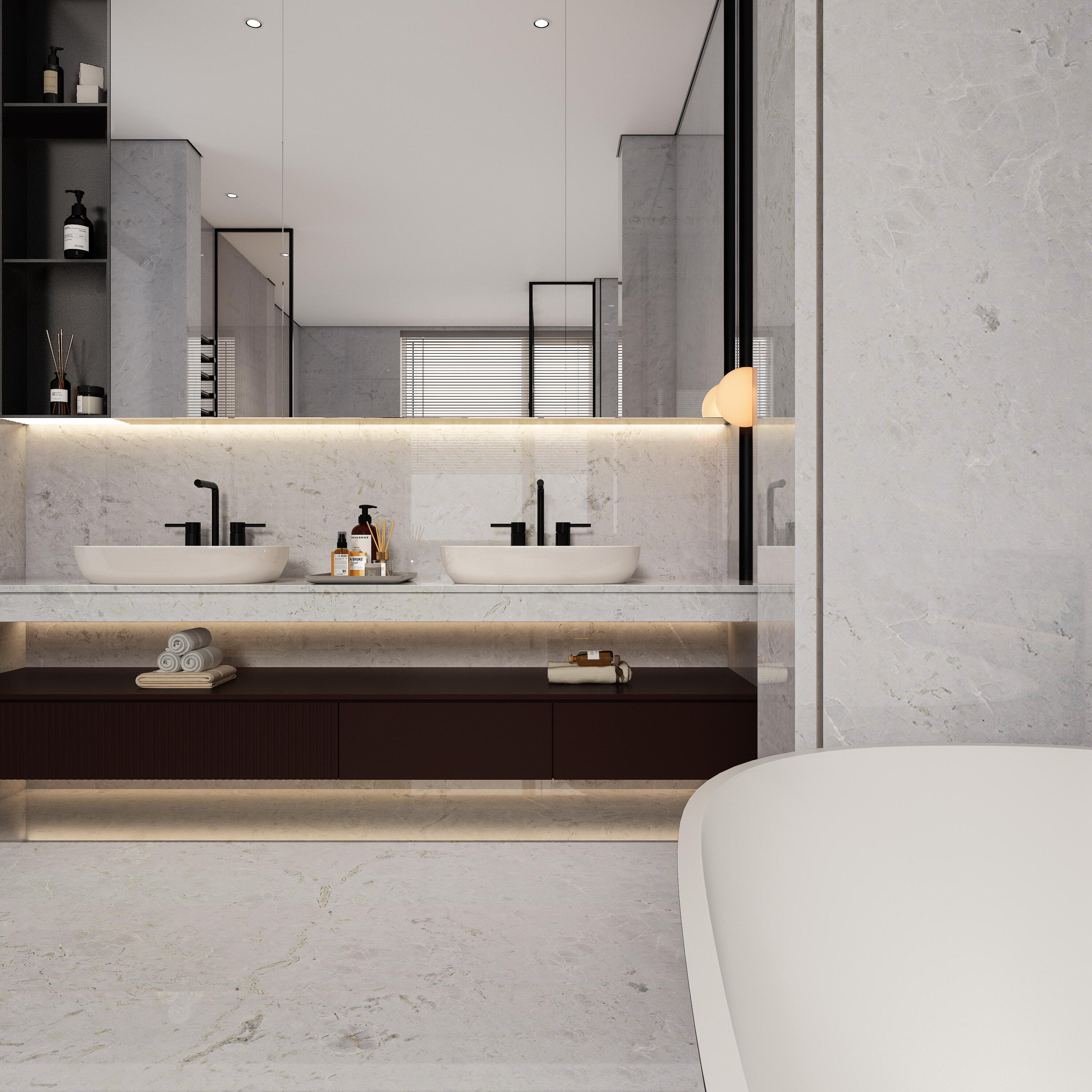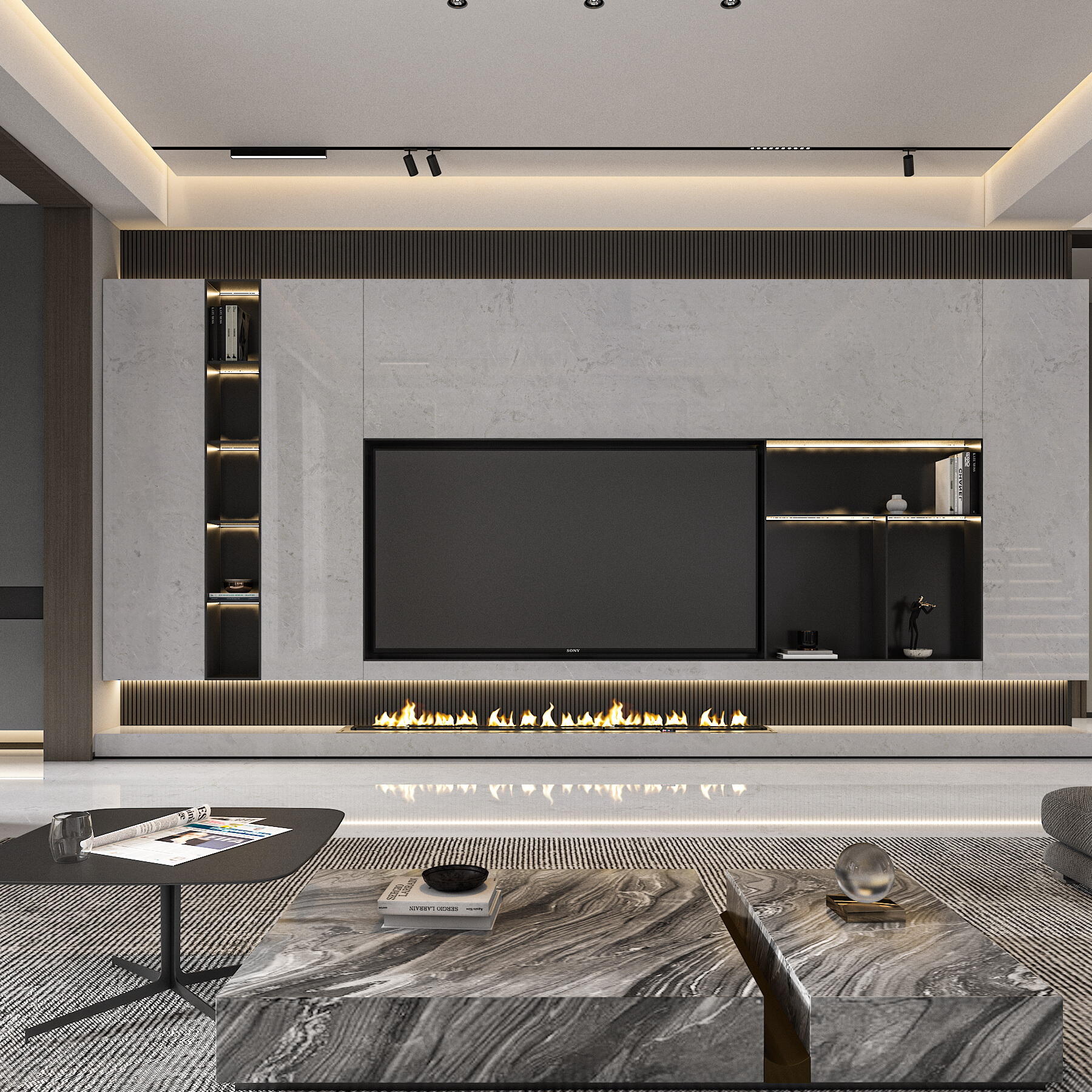 Alpine White uses pure white as the base color. The whiteness is just like the snow on the top of the Alps that never melts all year round. It exudes a holy glow under the sunlight, bringing a peaceful, bright and elegant atmosphere to the space. On this dreamy white, the gray lines are like a smart brush, painting a unique pattern. Among them, the diagonal lines shuttle through it in a smooth and dynamic posture, like the clouds blown by the wind in the Alps, elegant and casual; and a whole line of horizontal lines is like the layers of mountains, calm and atmospheric. These gray lines are uneven in thickness and density, and they complement each other with the white base color. Each piece of Alpine White stone presents a unique picture. When viewed from a distance, the overall visual effect is simple and atmospheric, and the purity of white and the agility of gray lines complement each other; when viewed up close, the delicate details of the lines show the uncanny workmanship of nature, adding a rich sense of layering and artistic charm to the space.