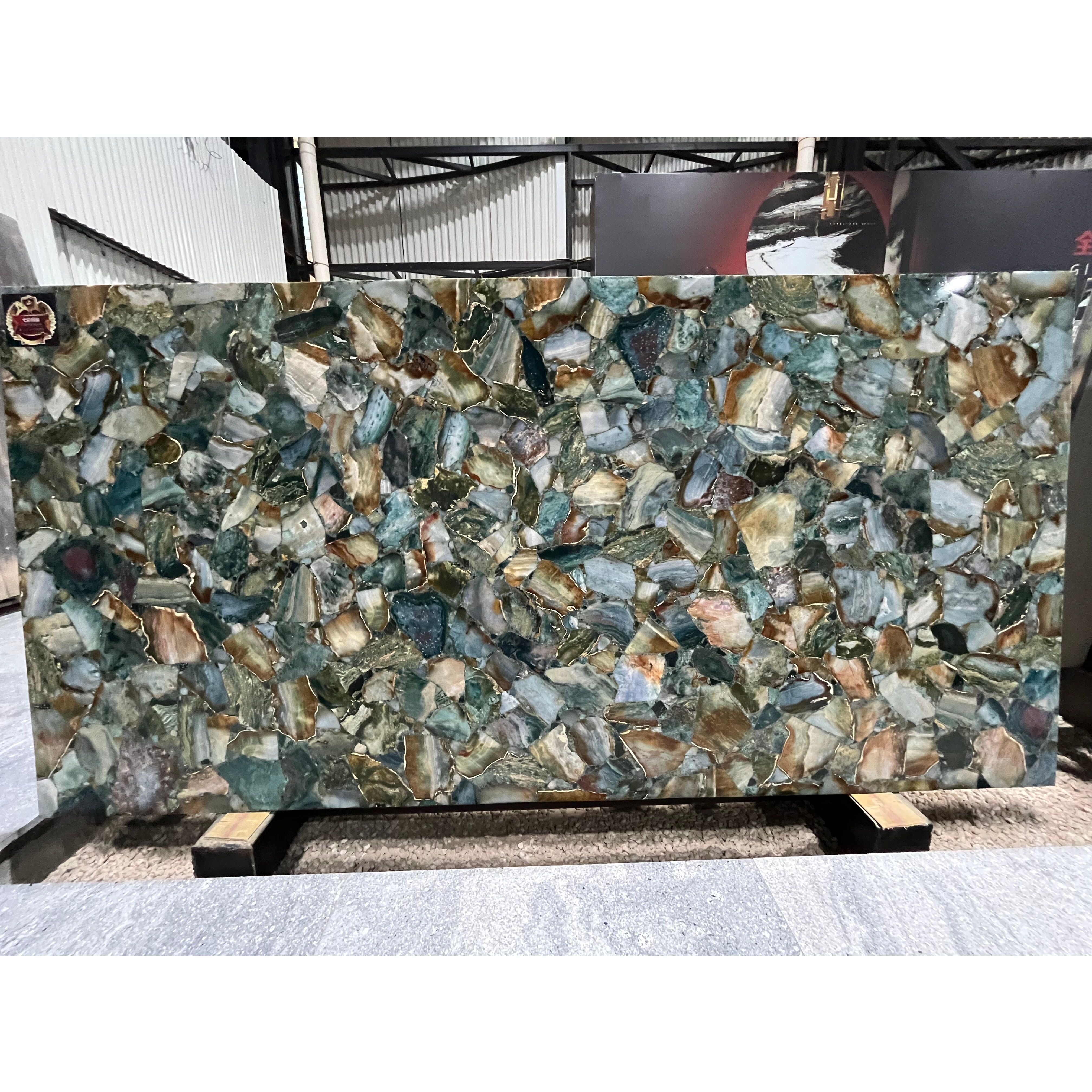 Exclusively designed for interior applications, these luxurious semi-precious stone slabs are favored in high-end architectural and interior design projects. Perfect for feature walls, countertops, vanities, and custom furniture, they serve as stunning focal points that elevate any indoor space. Yingliang Stone offers a curated selection of premium semi-precious slabs, including a wide range of agates—from classic blue agate to other vibrant color options. With their signature translucency and banded texture, each slab adds depth, refinement, and a touch of natural artistry to your design. Transform interiors with the timeless beauty of Semi precious stone—where nature meets craftsmanship.