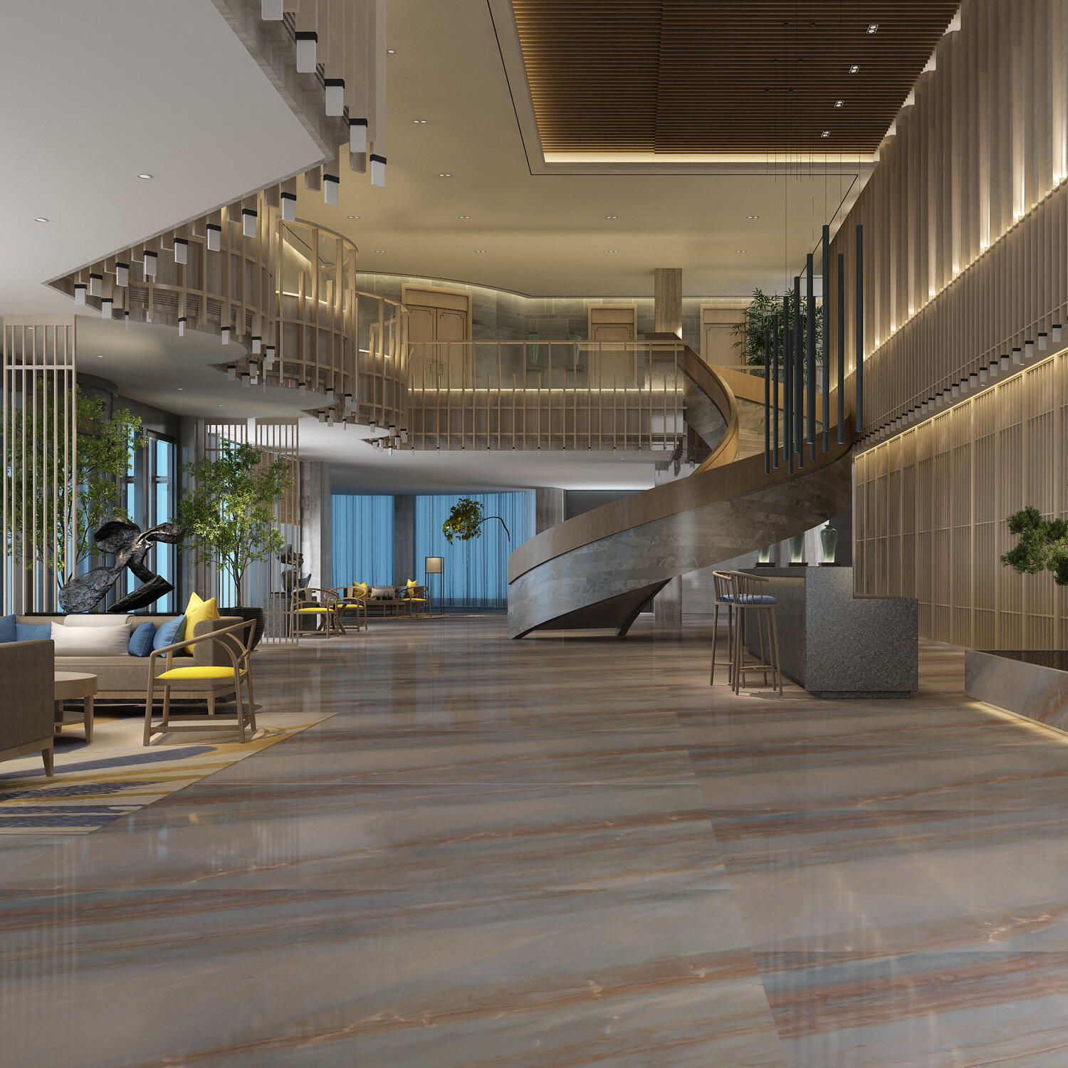 The elegant brown, with its natural texture and distinct layers, caters to the quiet and simple Chinese atmosphere of the space.
