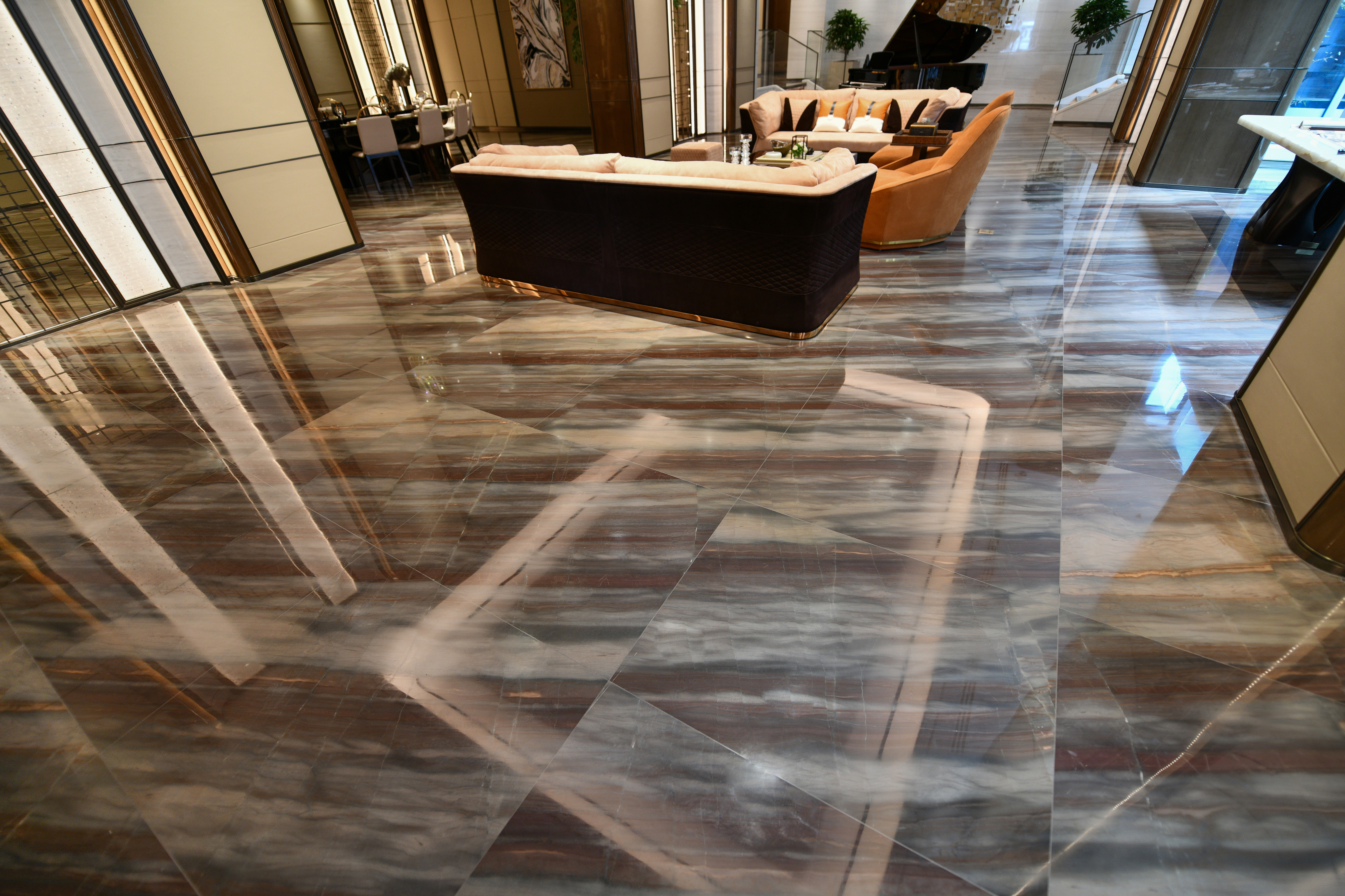It can be widely used in the floor, wall, and stairs in the hotel and apartment. And it is also very suitable for the countertop and dining talbe.