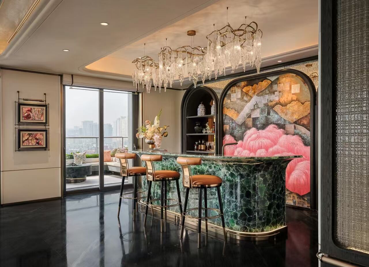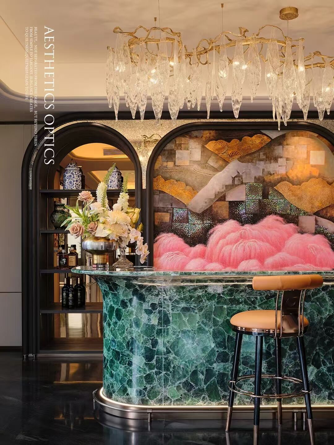 Green Fluorite mesmerizes with its translucent, jewel-like depth. Capturing the lush essence of moss and forest shadows, its rich green hues shift and play with light, revealing delicate, milky veins within. A stone of serene vitality, it transforms any surface—be it a sleek countertop, a dramatic backsplash, or a bespoke furniture accent—into a captivating natural artwork, infusing spaces with organic elegance and a touch of tranquil wonder