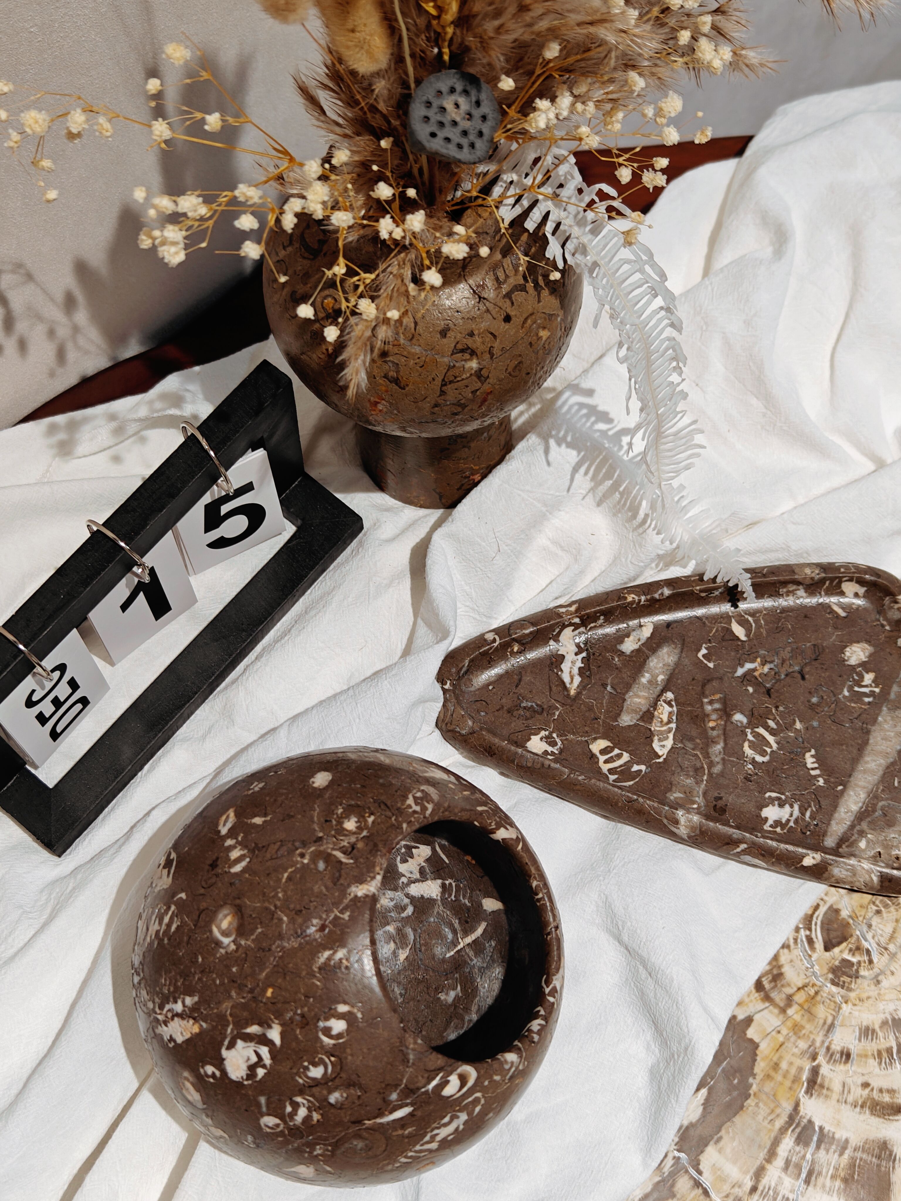 Handcrafted from solid natural stone, this storage box showcases unique mineral veining and a cool, substantial feel. Its sturdy construction and weighted base provide elegant, secure organization for small valuables or desk accessories.