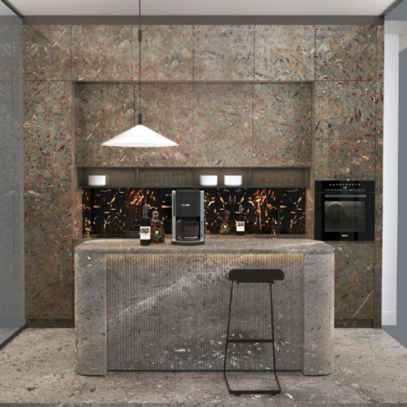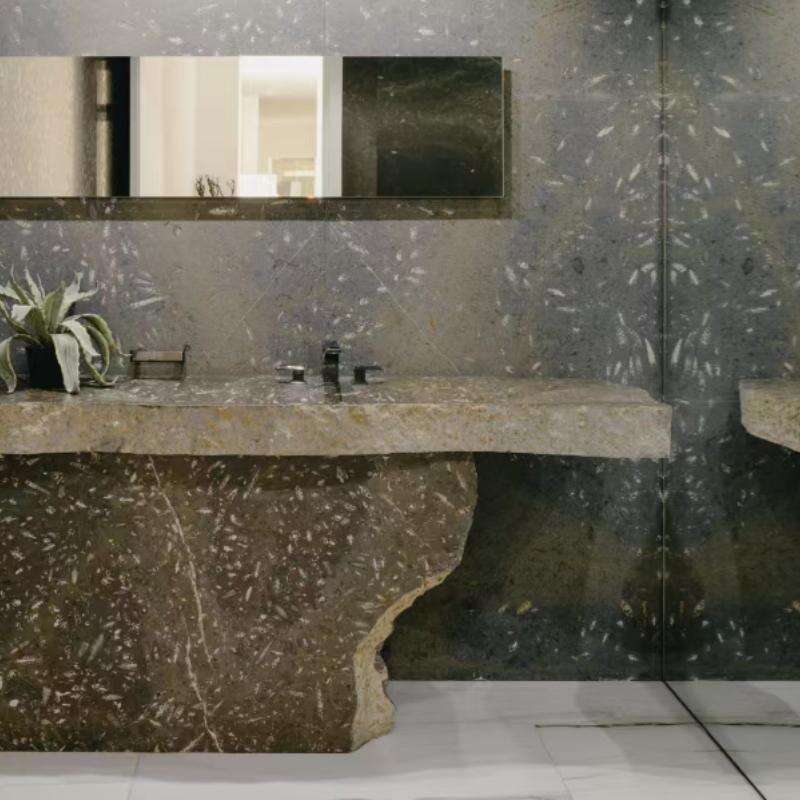 Each slab tells a prehistoric story, making it a striking choice for feature walls, countertops, and flooring. Perfect for both rustic and contemporary designs, this stone adds timeless character and natural intrigue to any space