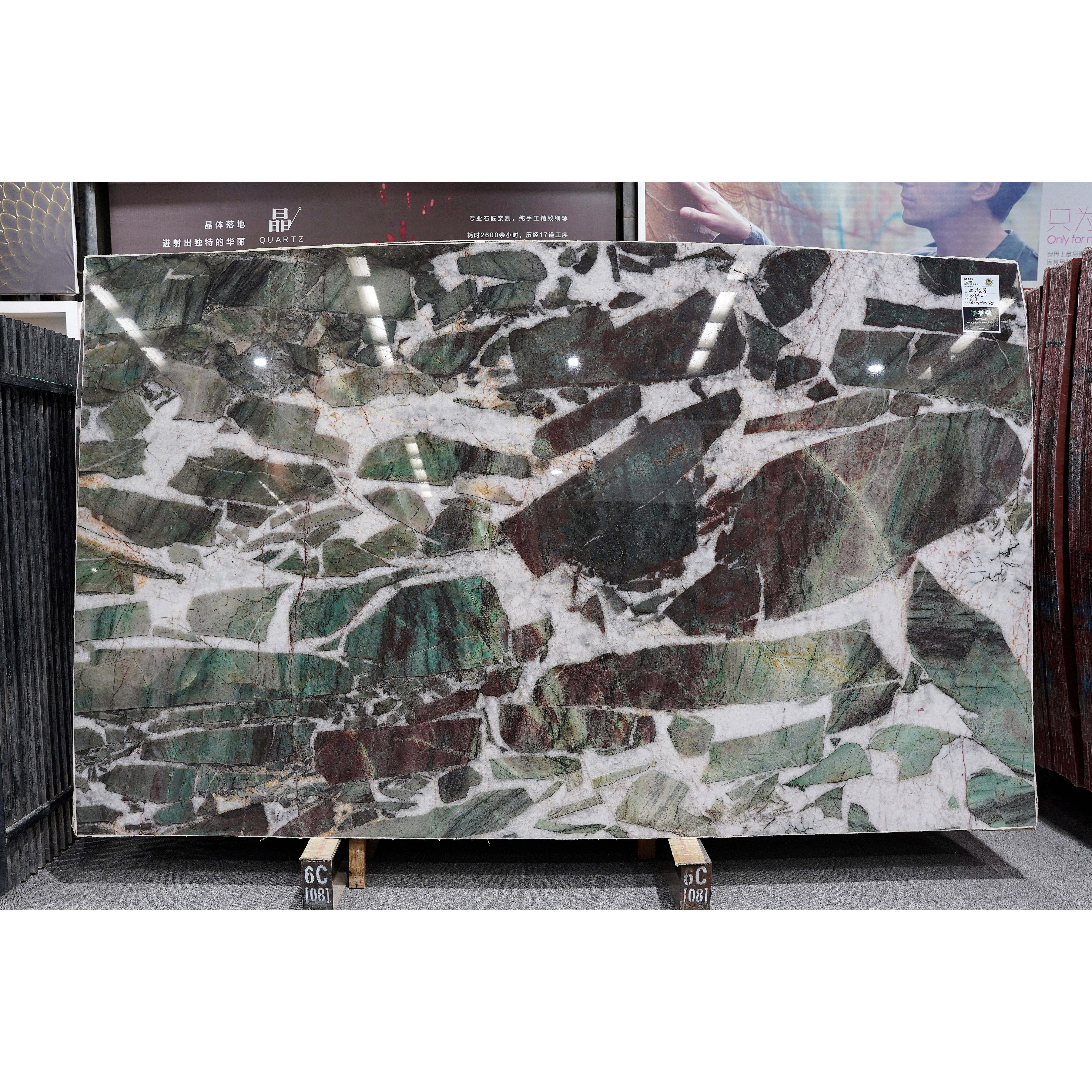 The appearance of Natura quartzite is extremely unique. The base color presents a clear and transparent white, like a glacier that has not melted for thousands of years, pure and quiet. In between, the emerald green veins are like lively jade, forming a series of wonderful patterns like natural landscape paintings. Each glacier jade quartz slab is unique, like a unique work of art painted by nature, bringing a lively and elegant atmosphere to the space.
