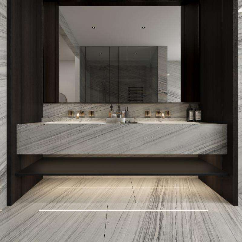 "New Horizon" is a visionary natural stone that blends soft, ethereal grays with delicate ivory veining, evoking the tranquil beauty of dawn.