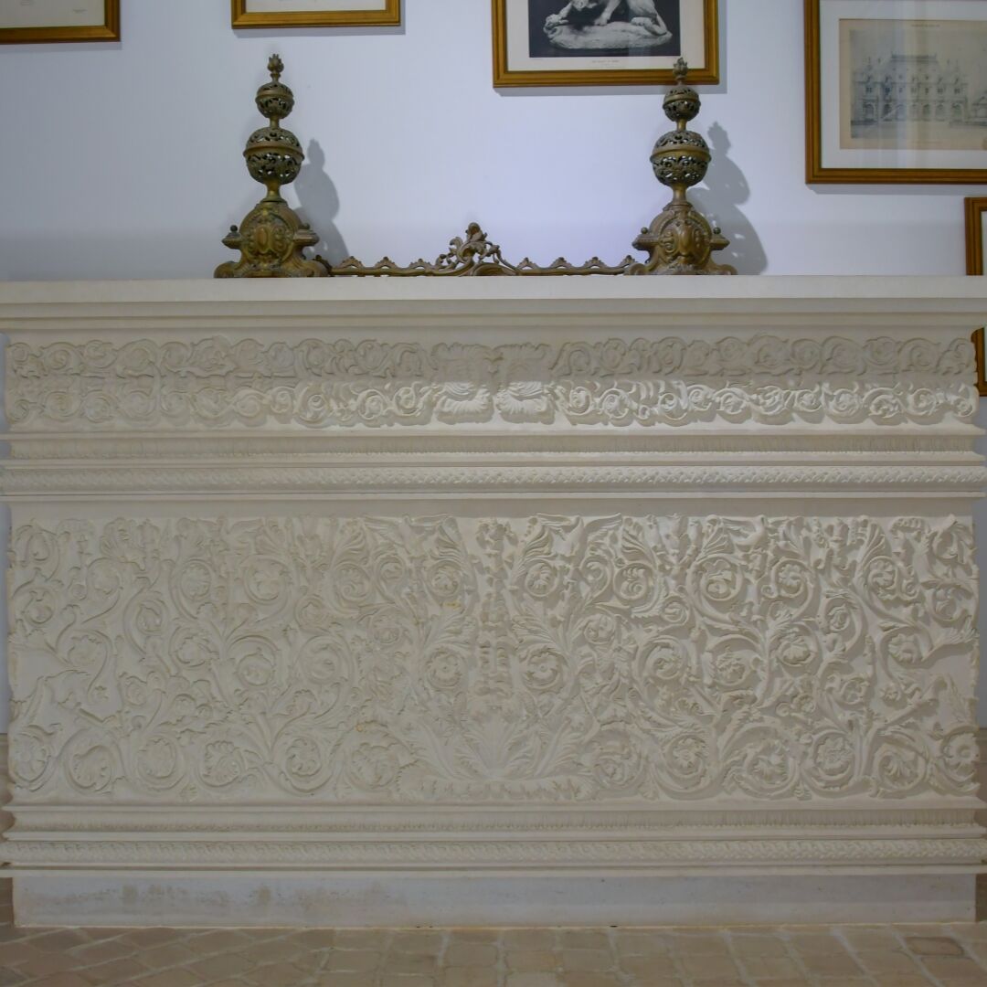 • High Relief (Alto-Relief): Boasts bold, multi-layered forms that project prominently from the base. It frequently integrates Hollowed Relief—a technique that hollows out the background to add translucency and airy depth. This combined approach elevates architectural elements (e.g., wall friezes, fireplace trim, and decorative grilles) by blending structural integration with light-and-shadow play.