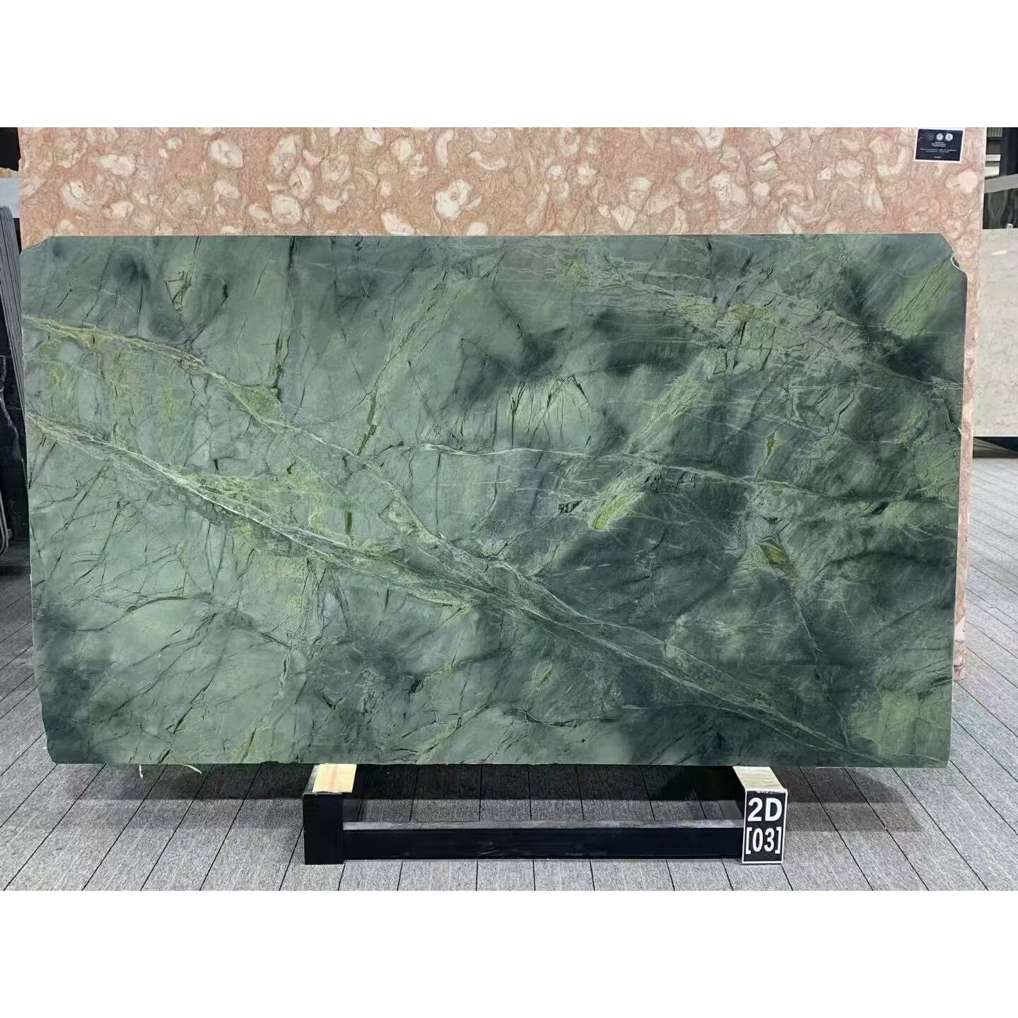 The wizard of Oz Deep Green Natural Stone Slab with Black Veins & Yellow Pattern