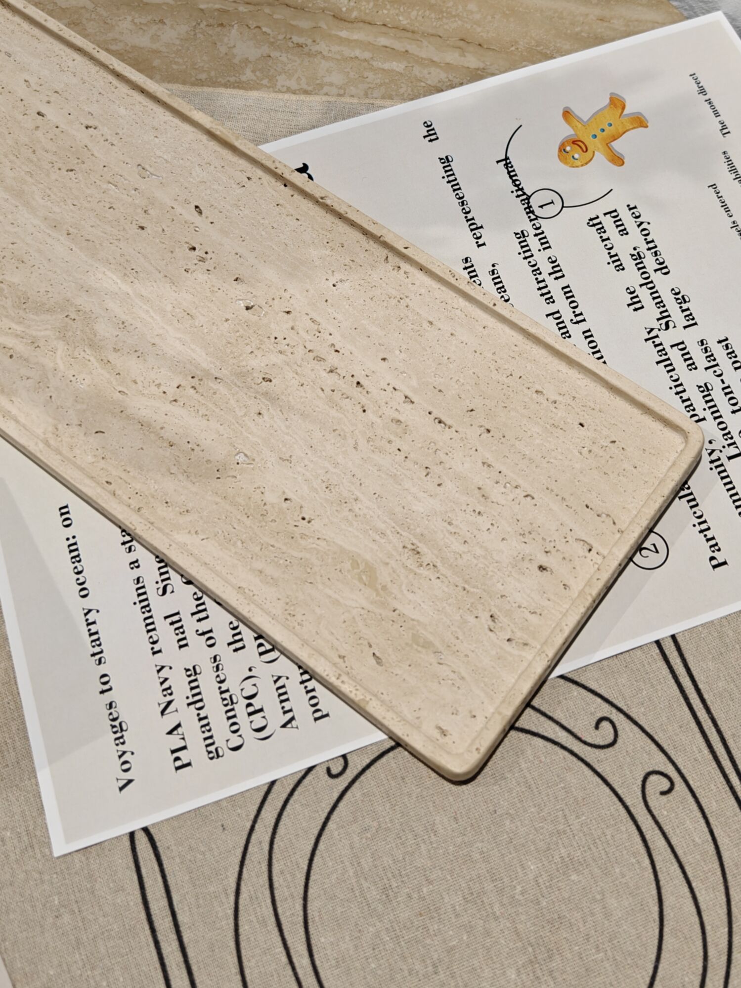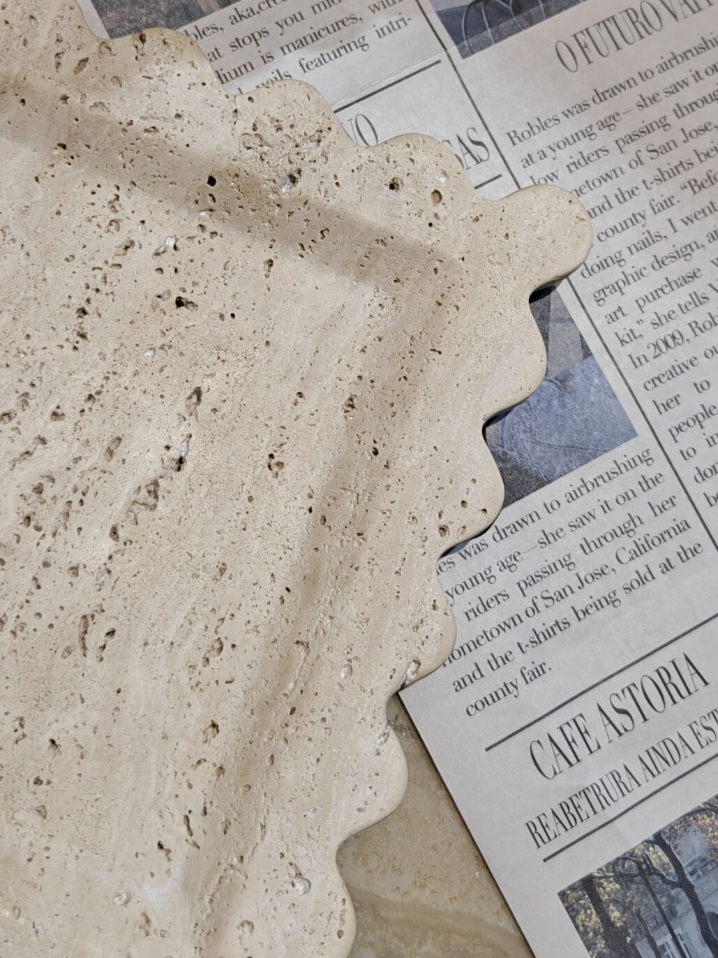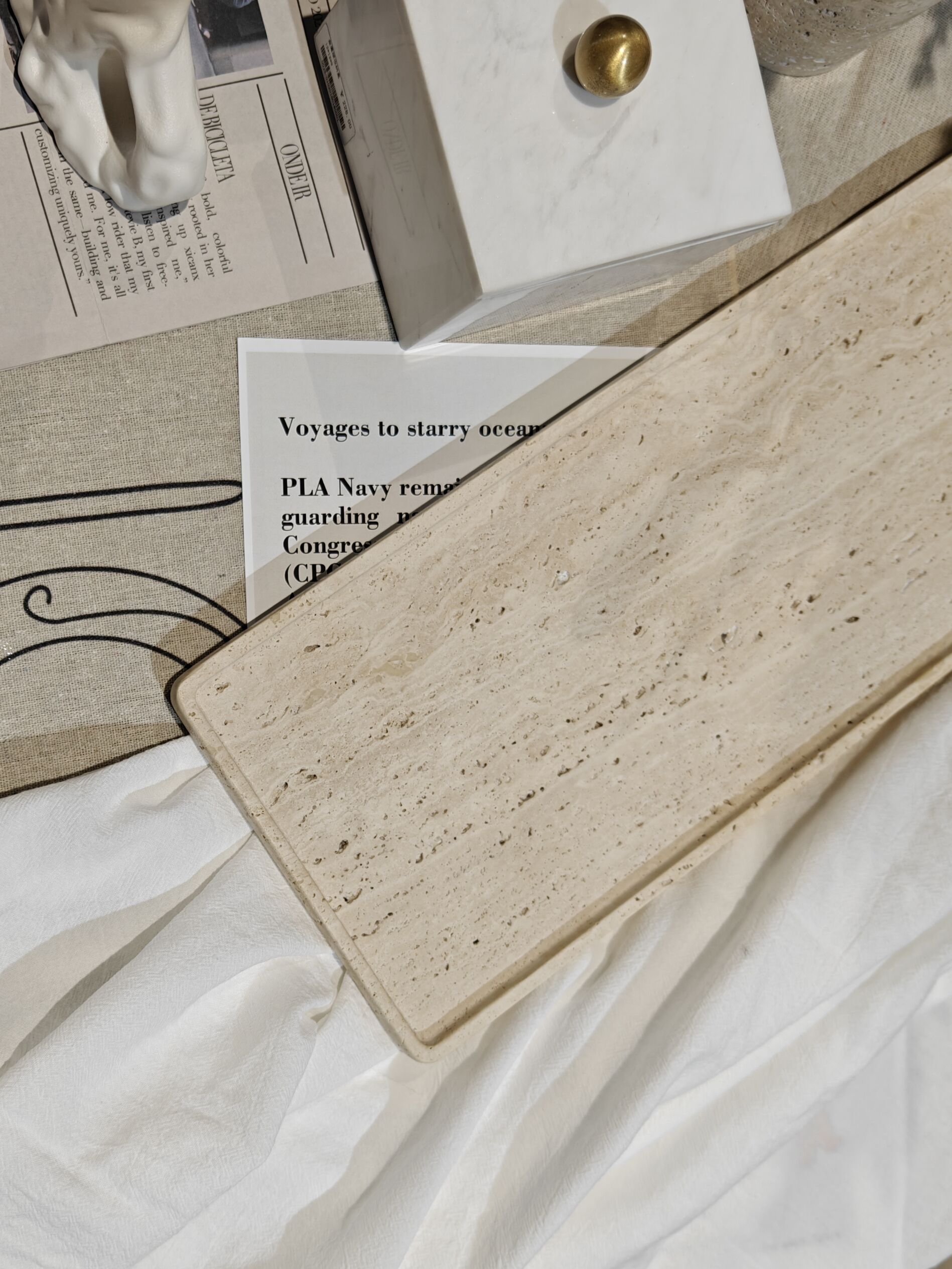 This natural travertine tray draws inspiration from the raw, untouched textures of the earth, bringing the untamed beauty of nature into the heart of your daily life.