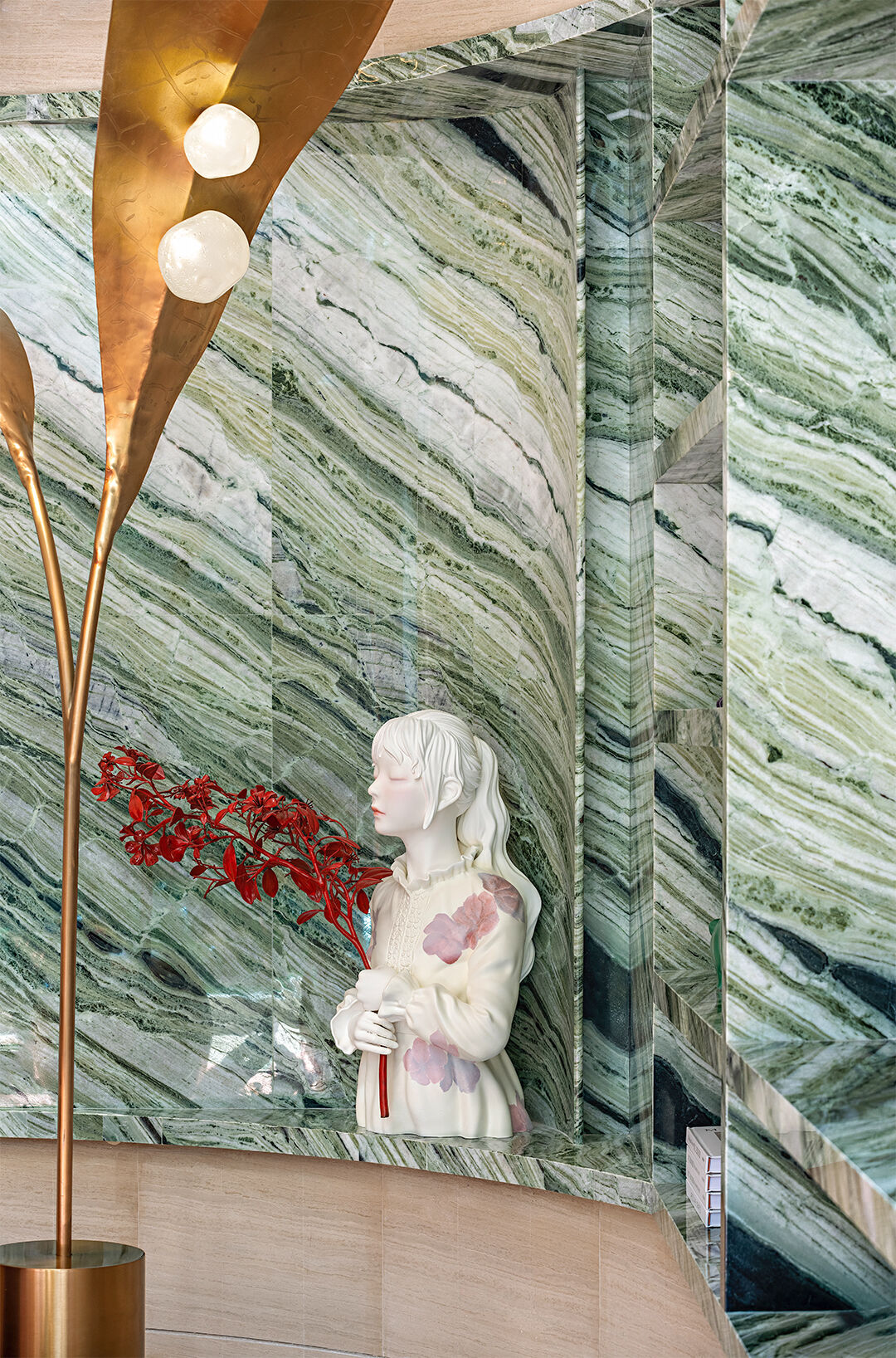 Verde Prato is a captivating natural stone showcasing a lush green base with intricate white and gold veining.
