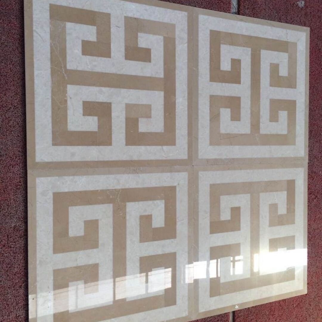 The creation process begins with digital design: artists or designers map out detailed patterns (geometric motifs, floral arrangements, custom logos, or classical emblems) using CAD software. Next, high-pressure waterjet cutting machines—equipped with abrasive materials (e.g., garnet) to enhance cutting power—slice natural stone slabs (such as marble, granite, onyx, or travertine) into exact, seamless pieces that match the design. The cut components are then carefully inlaid into a base (often a complementary stone slab or flooring material) and bonded with specialized adhesives, followed by grinding and polishing to create a smooth, unified surface.